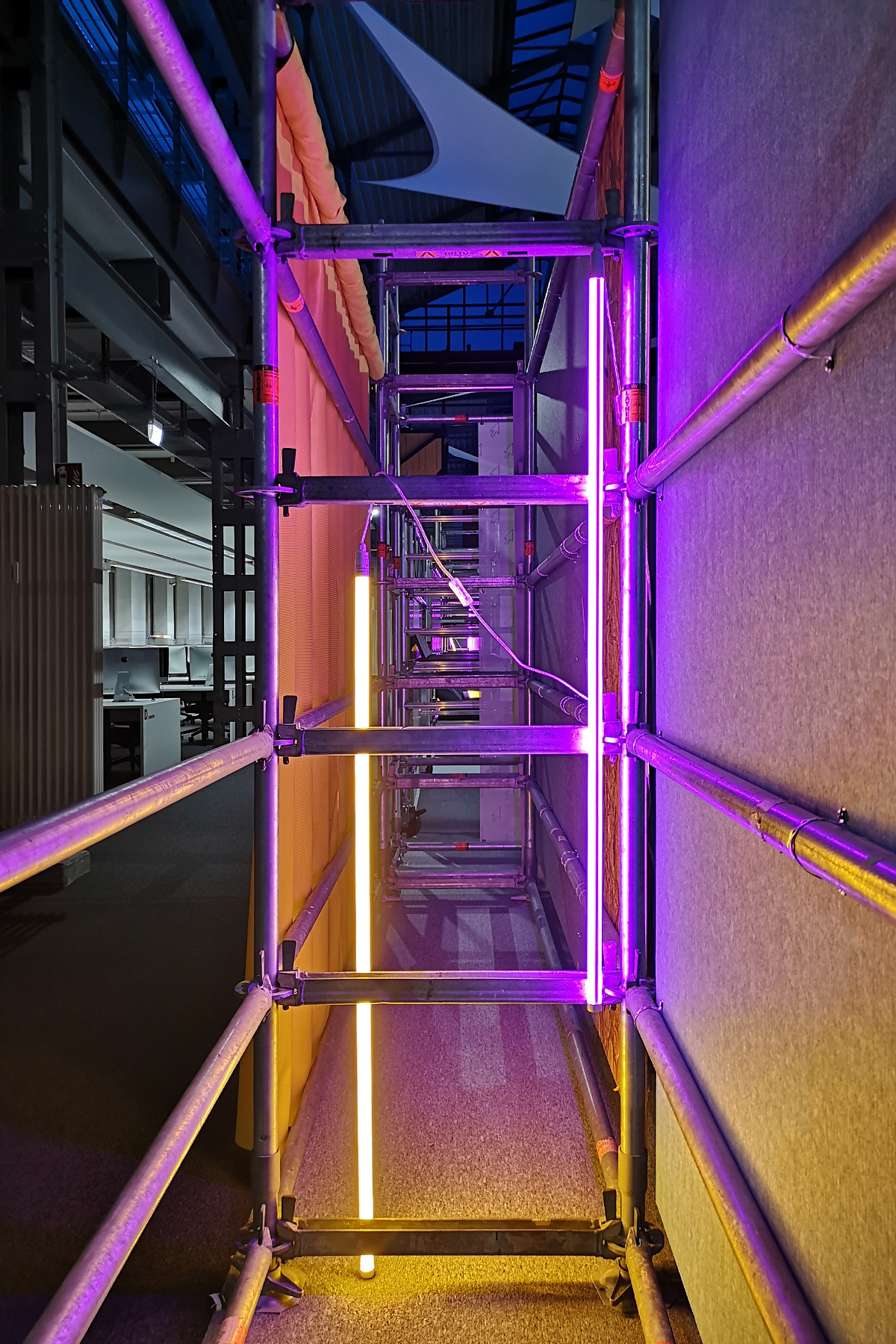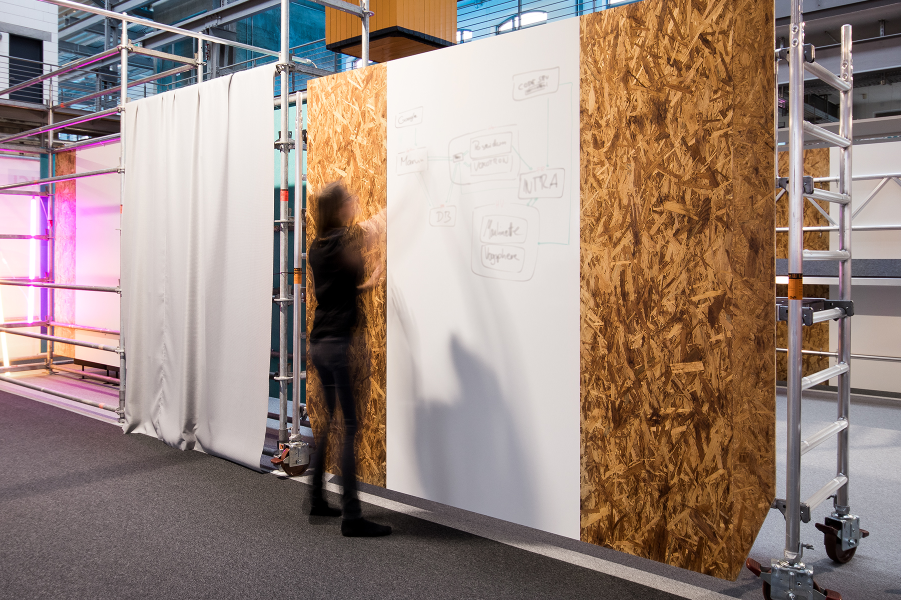 42 Heilbronn ist eine innovative, renommierte Programmierschule, die ihren Sitz im Herzen Heilbronns hat. Da die finalen Räumlichkeiten der Programmierschule noch nicht fertig gestellt wurden, entwickelten wir ein Raumkonzept, welches als Provisorium fungiert und gleichzeitig mobil und anpassungsfähig ist. Damit lassen die Bespielungen nicht nur Freiheiten für aktives Arbeiten in kleinen sowie großen Gruppen, sondern sind auch für den zukünftigen Umzug flexibel. Und das alles unter dem Motto „Spaceship“.