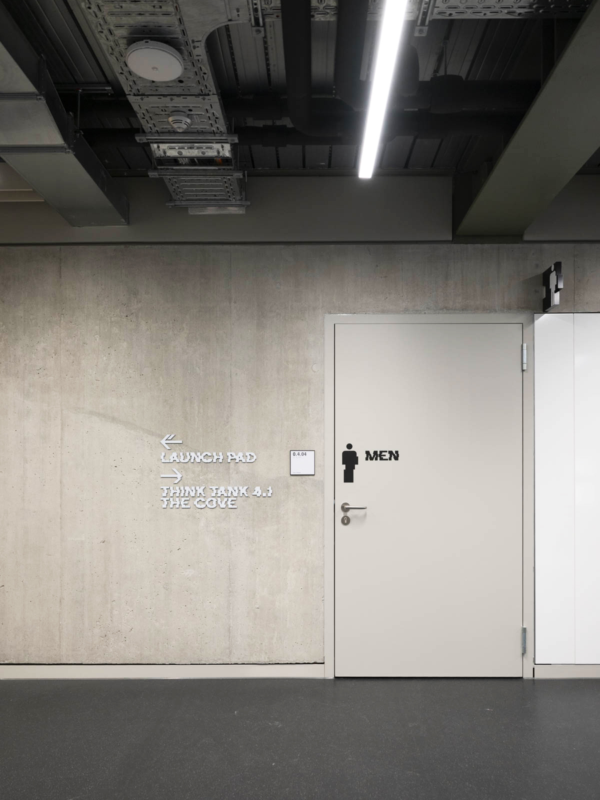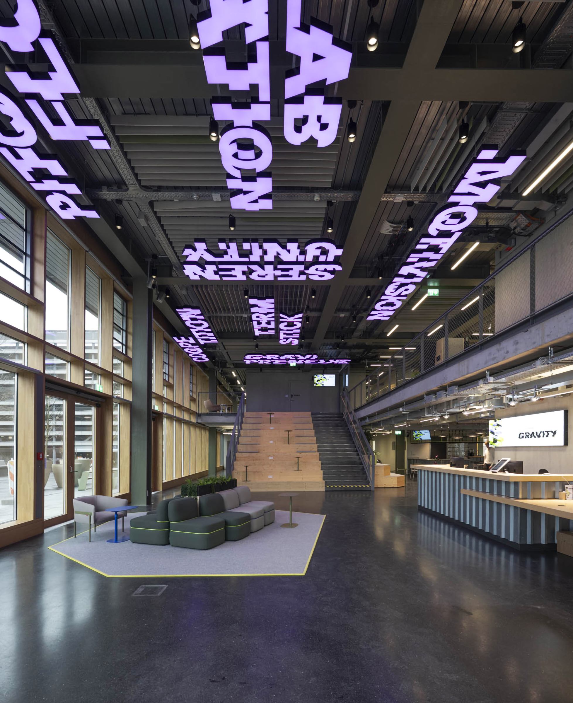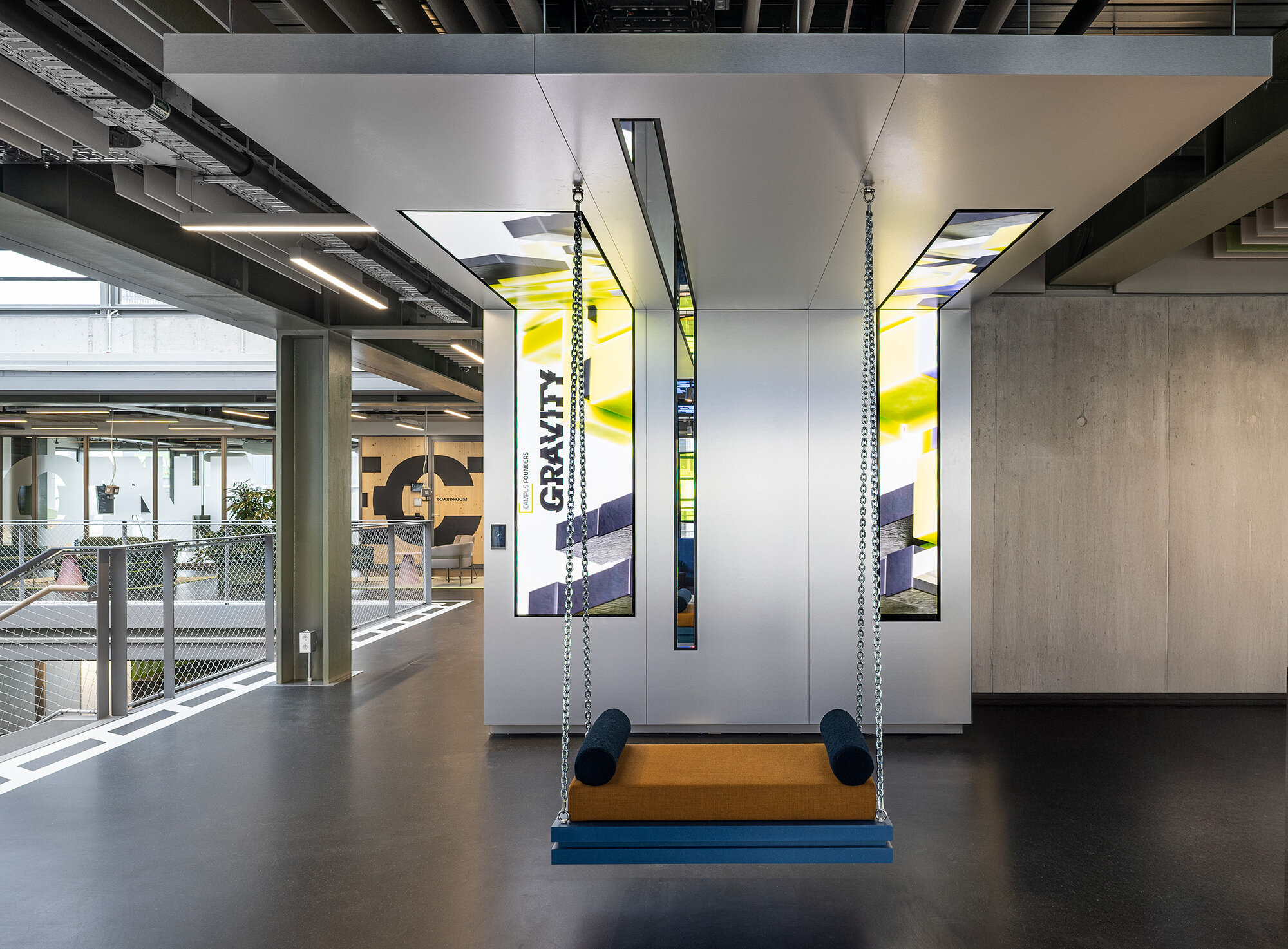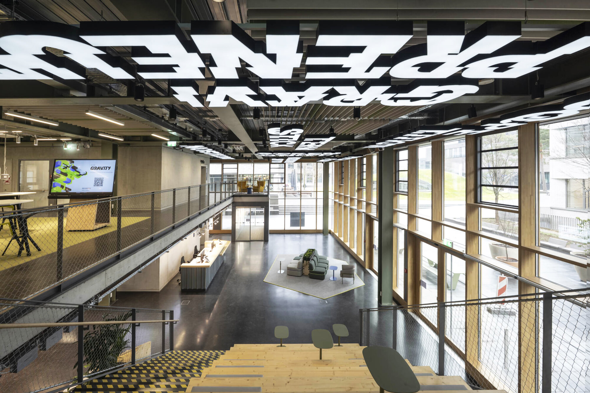 Für die Campus Founders in Heilbronn entwickelten und realisierten wir für den Neubau „Gravity“ einen identitätsstiftenden Ort für Startups in einem der einflussreichsten KI-Ökosysteme Europas. Dabei entstand ein ganzheitliches Gestaltungskonzept, bei dem die Signaletik nicht als nachgelagerte Ebene gedacht wurde, sondern als konzeptioneller Ausgangspunkt für das gesamte Innenraumkonzept. Das Orientierungssystem bildet das konzeptionelle Fundament des Projekts. Über acht Etagen hinweg strukturiert es nicht Erschließung und Funktionalität, sondern prägt die visuelle Identität des Gebäudes. Zentrales Element ist die eigens entwickelte Hausschrift CF Grotesk – eine Custom Type, die speziell für die Campus Founders entworfen wurde. Ausgangspunkt war eine noch unveröffentlichte Schrift, die in drei Segmente unterteilt, vervielfältigt und gezielt verschoben wurde. Das daraus entstandene dekonstruktive Schriftbild transportiert Dynamik, Innovation und technologische Präzision – Werte, die sich im gesamten Innenraum widerspiegeln. CF Grotesk umfasst drei Alternativzeichen pro Buchstaben, die Ziffern sowie die meisten Satzzeichen und unterstützt die deutsche und englische Sprache mit erweitertem Zeichensatz. Die Fontproduktion und das Mastering erfolgten durch Christoph Koeberlin, Spacing und Kerning durch Gabriel Richter (nice to type). Die gestalterischen Prinzipien der Schrift – Segmentierung, Überlagerung, Verschiebung – wurden in Materialität, Flächengestaltung, Zonierung und architektonische Details übersetzt. So entwickelte sich aus der grafischen Identität ein räumliches System. Von der Konzeption über die detaillierte Ausführungsplanung bis zur Umsetzung – das Ergebnis ist ein maßgeschneiderter Innenraum, in dem Orientierung, Architektur und Corporate Identity eine gestalterische Einheit bilden.