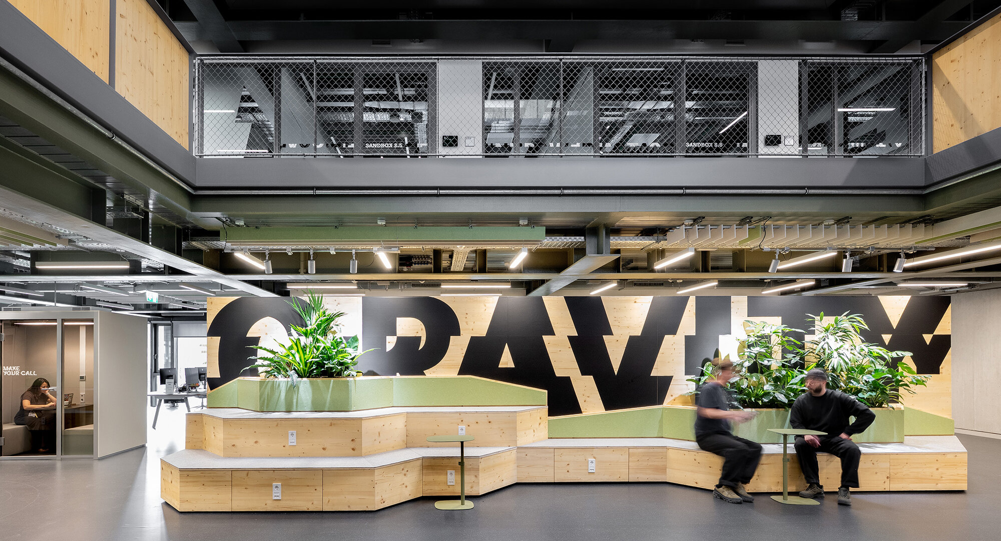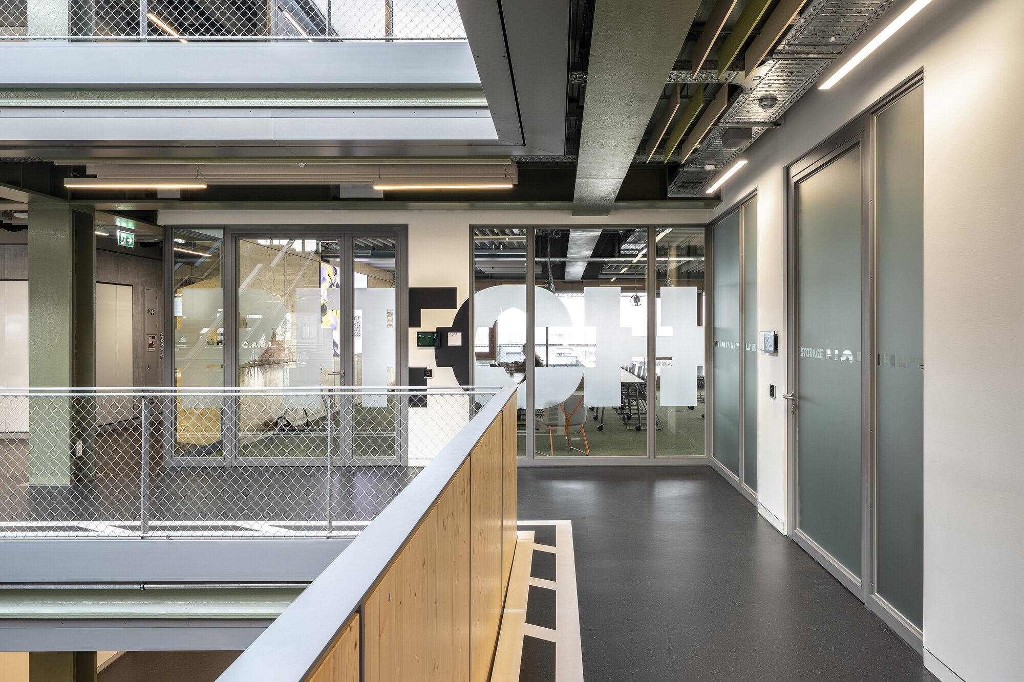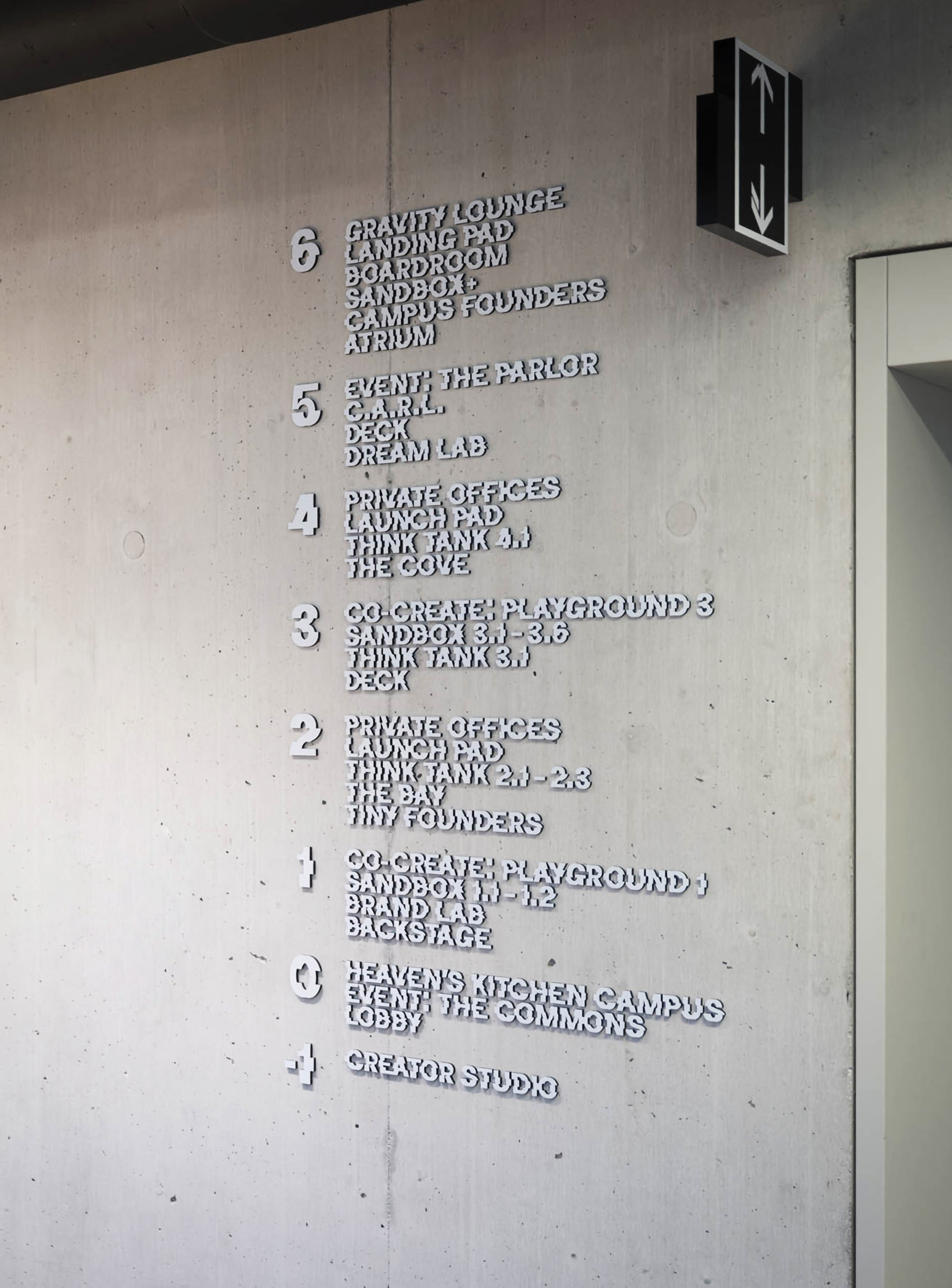 Für die Campus Founders in Heilbronn entwickelten und realisierten wir für den Neubau „Gravity“ einen identitätsstiftenden Ort für Startups in einem der einflussreichsten KI-Ökosysteme Europas. Dabei entstand ein ganzheitliches Gestaltungskonzept, bei dem die Signaletik nicht als nachgelagerte Ebene gedacht wurde, sondern als konzeptioneller Ausgangspunkt für das gesamte Innenraumkonzept. Das Orientierungssystem bildet das konzeptionelle Fundament des Projekts. Über acht Etagen hinweg strukturiert es nicht Erschließung und Funktionalität, sondern prägt die visuelle Identität des Gebäudes. Zentrales Element ist die eigens entwickelte Hausschrift CF Grotesk – eine Custom Type, die speziell für die Campus Founders entworfen wurde. Ausgangspunkt war eine noch unveröffentlichte Schrift, die in drei Segmente unterteilt, vervielfältigt und gezielt verschoben wurde. Das daraus entstandene dekonstruktive Schriftbild transportiert Dynamik, Innovation und technologische Präzision – Werte, die sich im gesamten Innenraum widerspiegeln. CF Grotesk umfasst drei Alternativzeichen pro Buchstaben, die Ziffern sowie die meisten Satzzeichen und unterstützt die deutsche und englische Sprache mit erweitertem Zeichensatz. Die Fontproduktion und das Mastering erfolgten durch Christoph Koeberlin, Spacing und Kerning durch Gabriel Richter (nice to type). Die gestalterischen Prinzipien der Schrift – Segmentierung, Überlagerung, Verschiebung – wurden in Materialität, Flächengestaltung, Zonierung und architektonische Details übersetzt. So entwickelte sich aus der grafischen Identität ein räumliches System. Von der Konzeption über die detaillierte Ausführungsplanung bis zur Umsetzung – das Ergebnis ist ein maßgeschneiderter Innenraum, in dem Orientierung, Architektur und Corporate Identity eine gestalterische Einheit bilden.