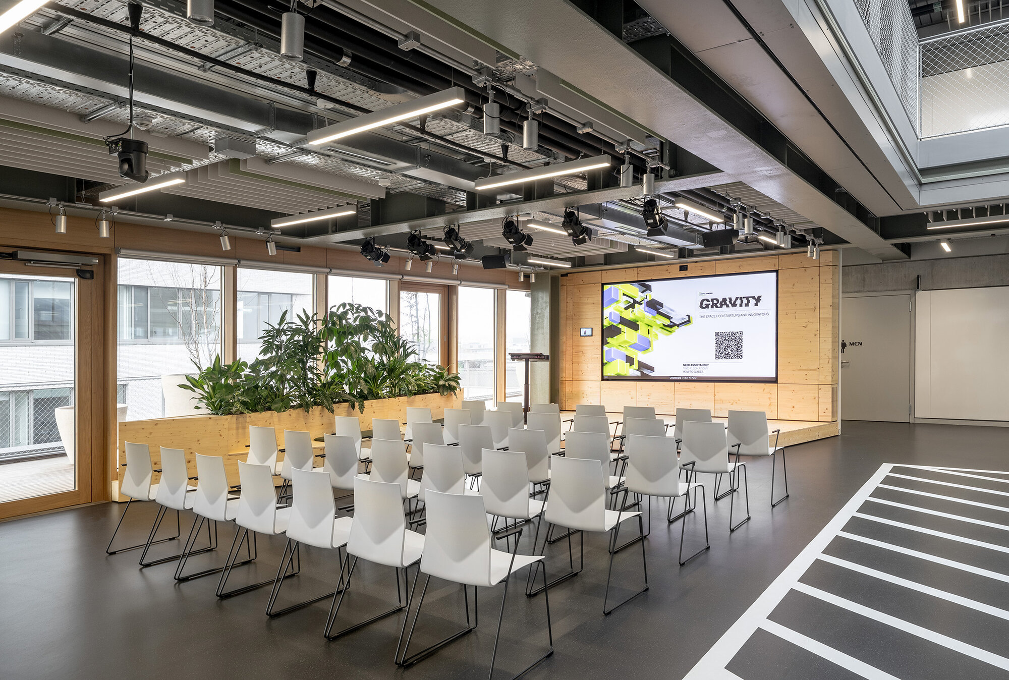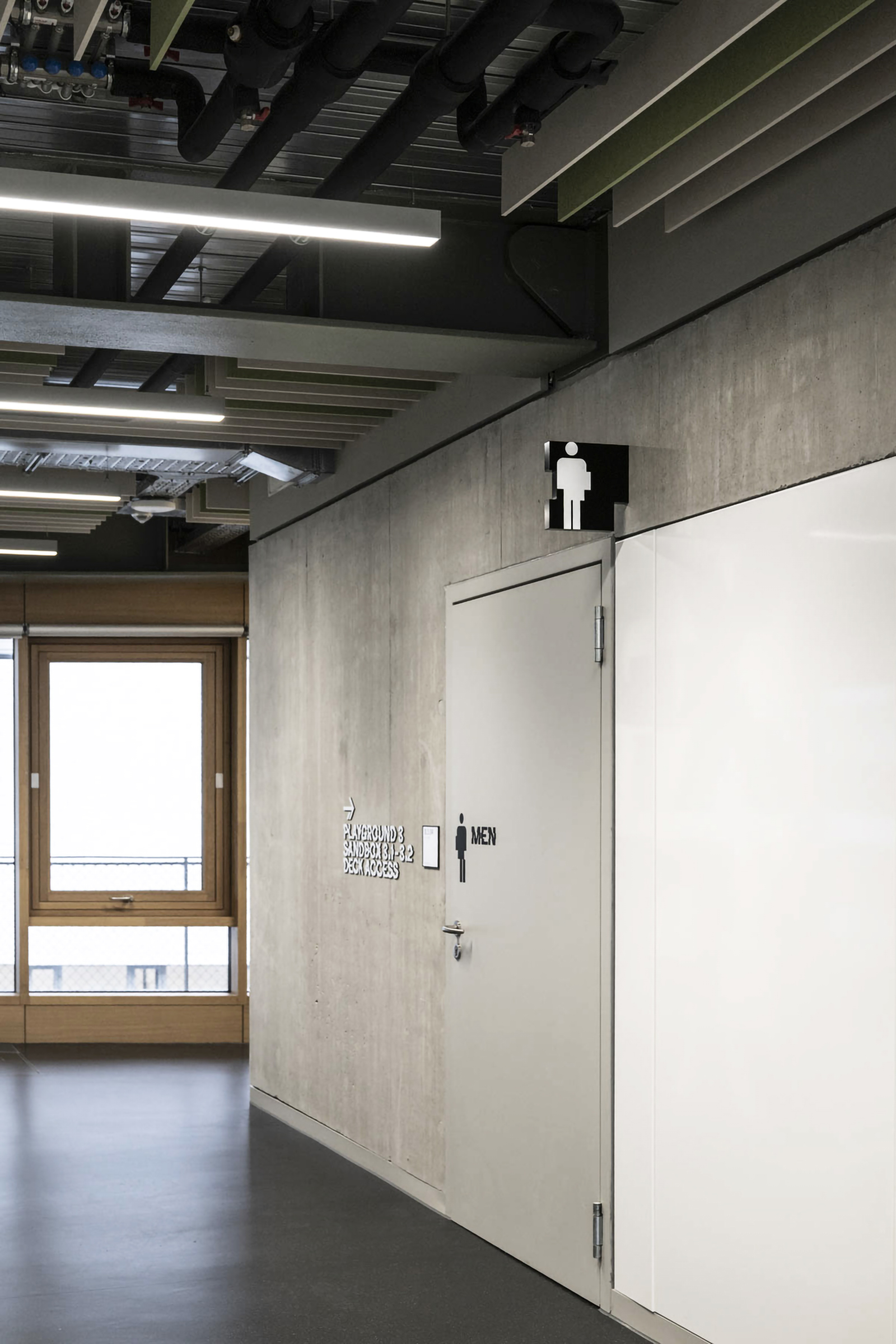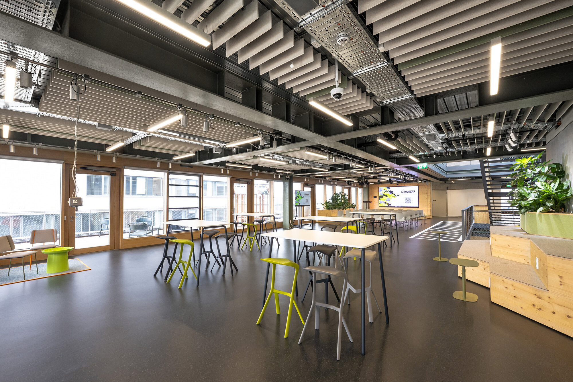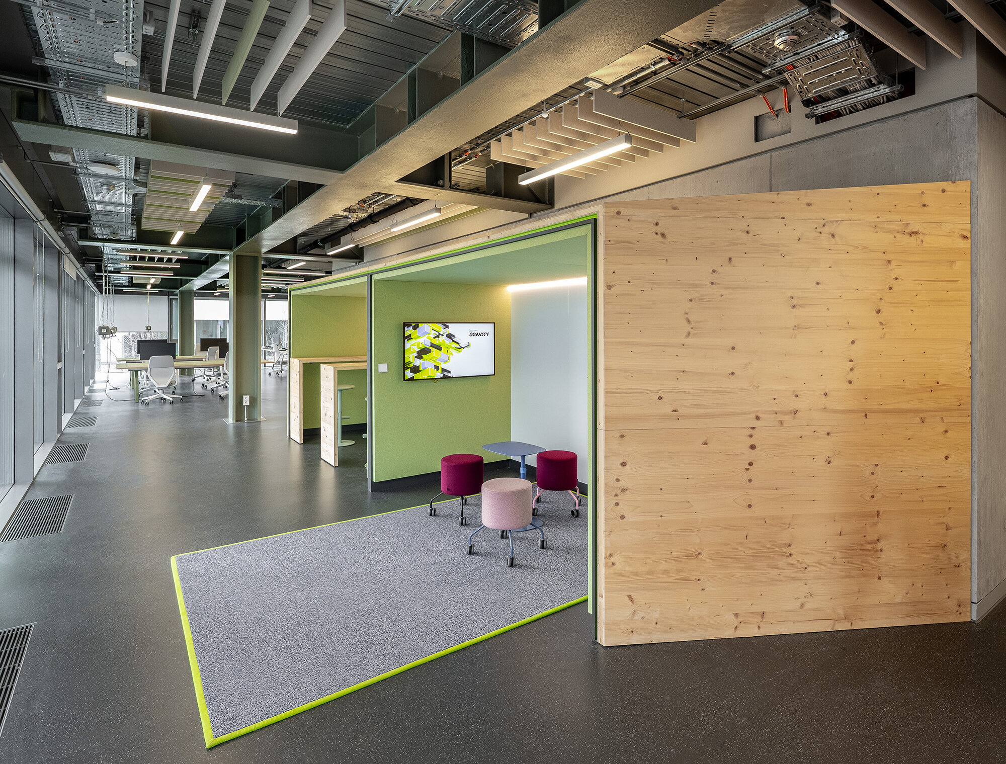 Für die Campus Founders in Heilbronn entwickelten und realisierten wir für den Neubau „Gravity“ einen identitätsstiftenden Ort für Startups in einem der einflussreichsten KI-Ökosysteme Europas. Dabei entstand ein ganzheitliches Gestaltungskonzept, bei dem die Signaletik nicht als nachgelagerte Ebene gedacht wurde, sondern als konzeptioneller Ausgangspunkt für das gesamte Innenraumkonzept. Das Orientierungssystem bildet das konzeptionelle Fundament des Projekts. Über acht Etagen hinweg strukturiert es nicht Erschließung und Funktionalität, sondern prägt die visuelle Identität des Gebäudes. Zentrales Element ist die eigens entwickelte Hausschrift CF Grotesk – eine Custom Type, die speziell für die Campus Founders entworfen wurde. Ausgangspunkt war eine noch unveröffentlichte Schrift, die in drei Segmente unterteilt, vervielfältigt und gezielt verschoben wurde. Das daraus entstandene dekonstruktive Schriftbild transportiert Dynamik, Innovation und technologische Präzision – Werte, die sich im gesamten Innenraum widerspiegeln. CF Grotesk umfasst drei Alternativzeichen pro Buchstaben, die Ziffern sowie die meisten Satzzeichen und unterstützt die deutsche und englische Sprache mit erweitertem Zeichensatz. Die Fontproduktion und das Mastering erfolgten durch Christoph Koeberlin, Spacing und Kerning durch Gabriel Richter (nice to type). Die gestalterischen Prinzipien der Schrift – Segmentierung, Überlagerung, Verschiebung – wurden in Materialität, Flächengestaltung, Zonierung und architektonische Details übersetzt. So entwickelte sich aus der grafischen Identität ein räumliches System. Von der Konzeption über die detaillierte Ausführungsplanung bis zur Umsetzung – das Ergebnis ist ein maßgeschneiderter Innenraum, in dem Orientierung, Architektur und Corporate Identity eine gestalterische Einheit bilden.