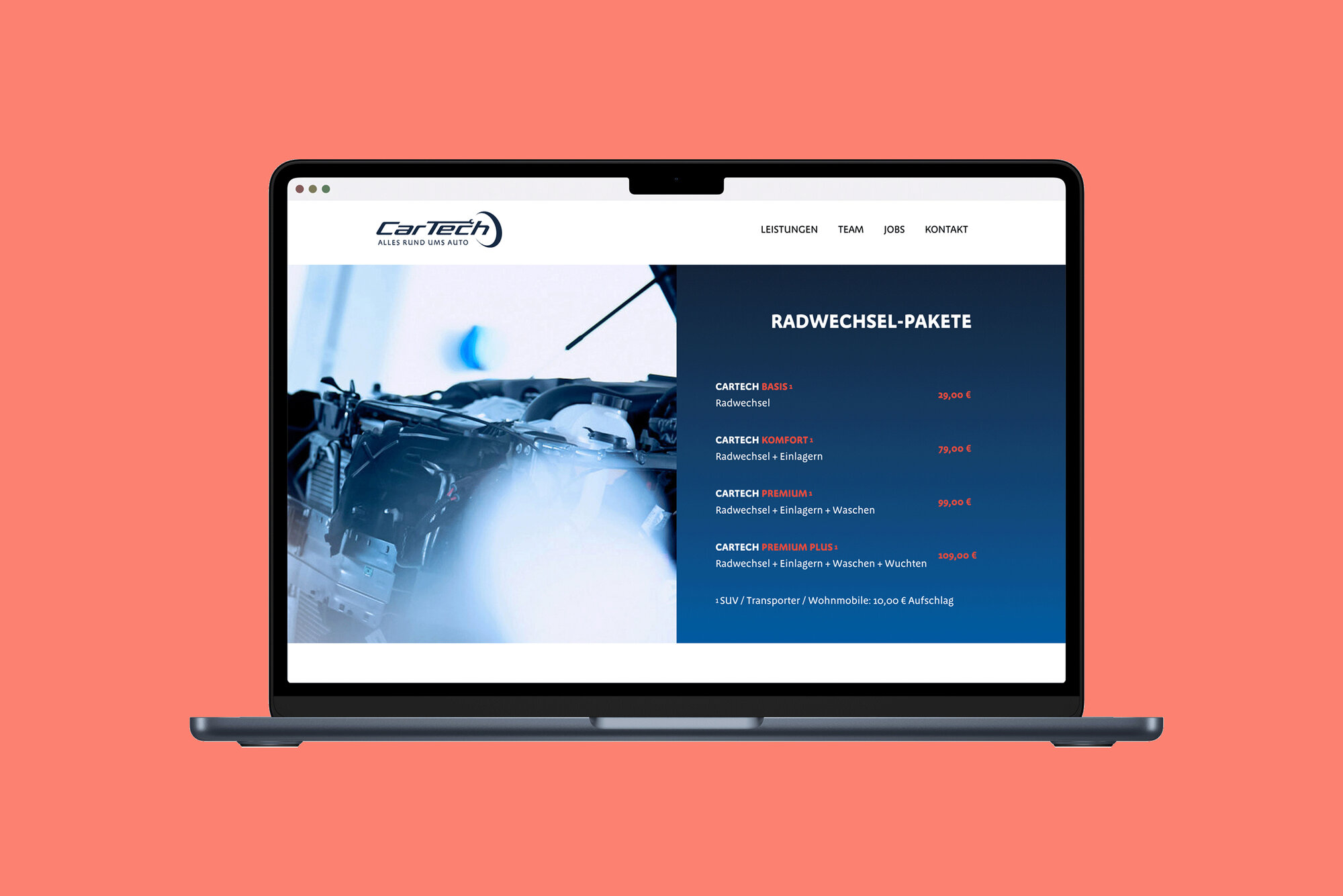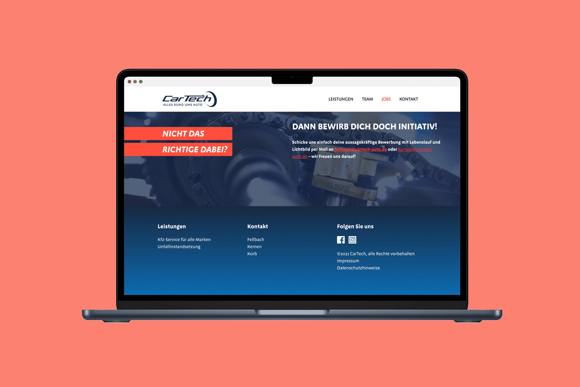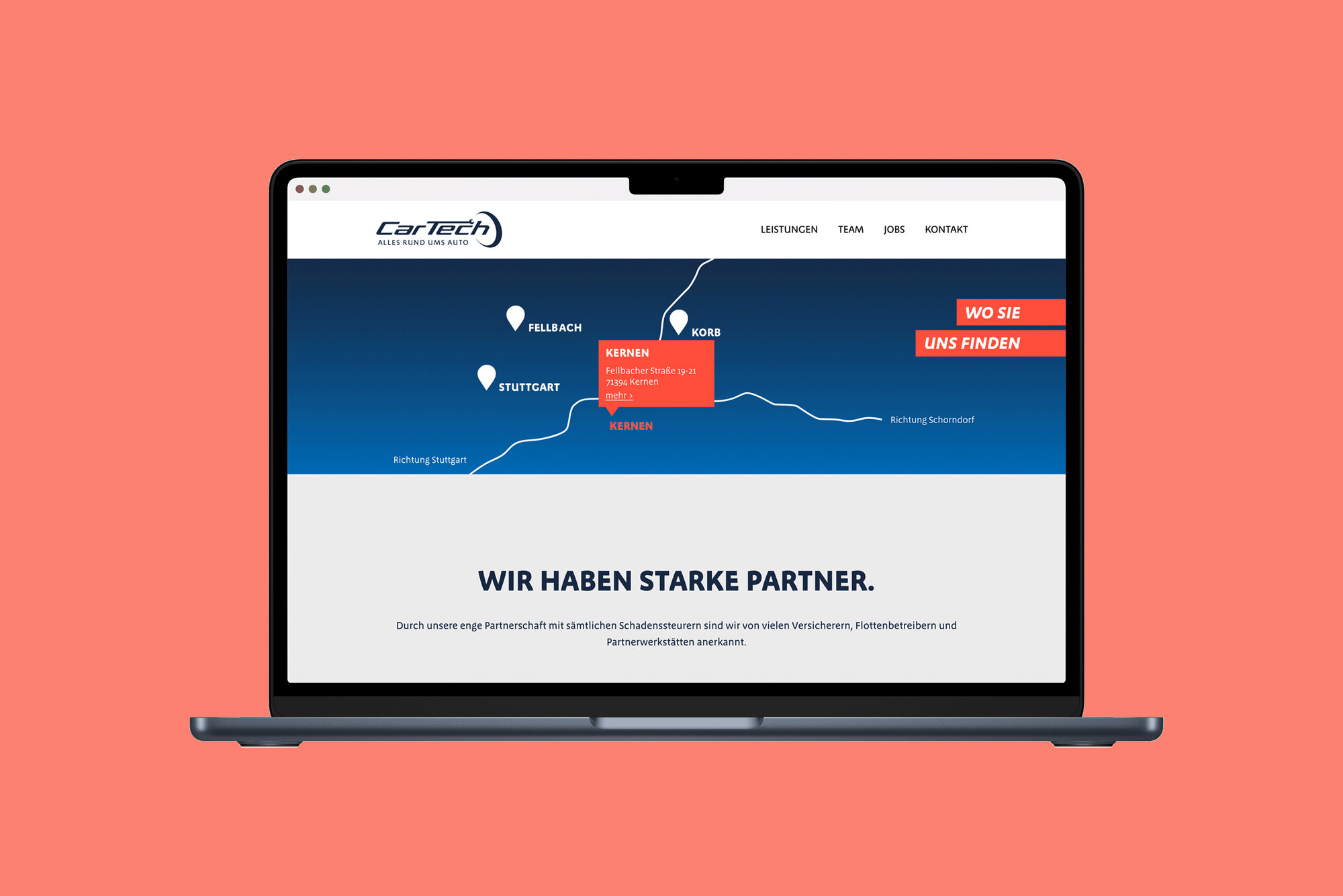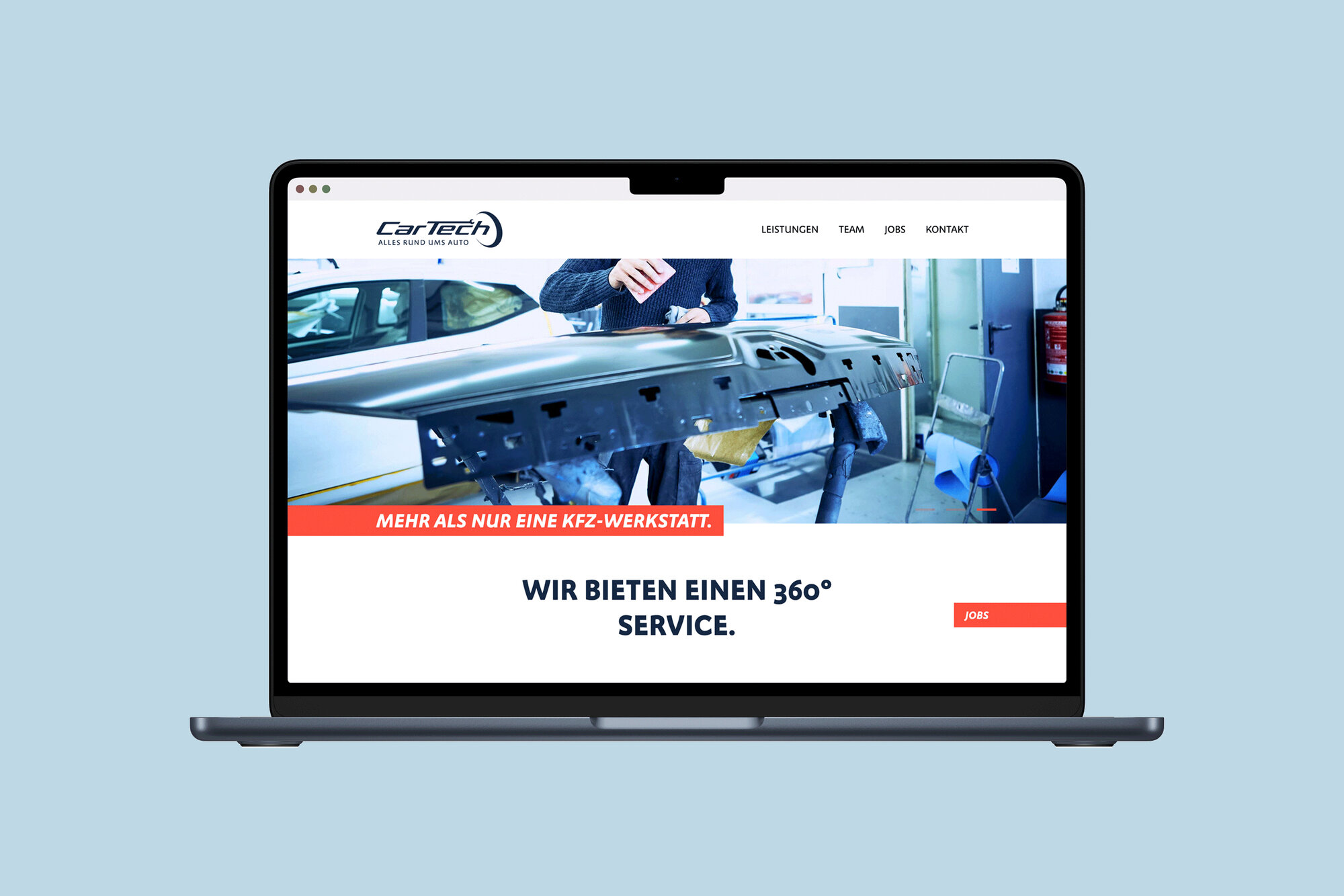 Mit dem neuen Relaunch der Website präsentiert sich die CarTech GmbH im neuen Design. Aufgeräumt, clean und auf's Wesentliche fokussiert. Gestützt wird der Inhalt durch individuell entwickelte Icons und eine moderne Bildsprache. Die Navigationsstruktur ist für die Zielgruppe leicht und übersichtlich aufgebaut. Für den User sind die Leistungen auf einen Blick ersichtlich. Personenbezogene, lockere Team-Bilder ergänzen die Website im responsive Design. Der neue, authentisch-einheitliche Look findet sich im Zuge des Relaunches der Website fortan auch in allen weiteren Werbemitteln wieder.