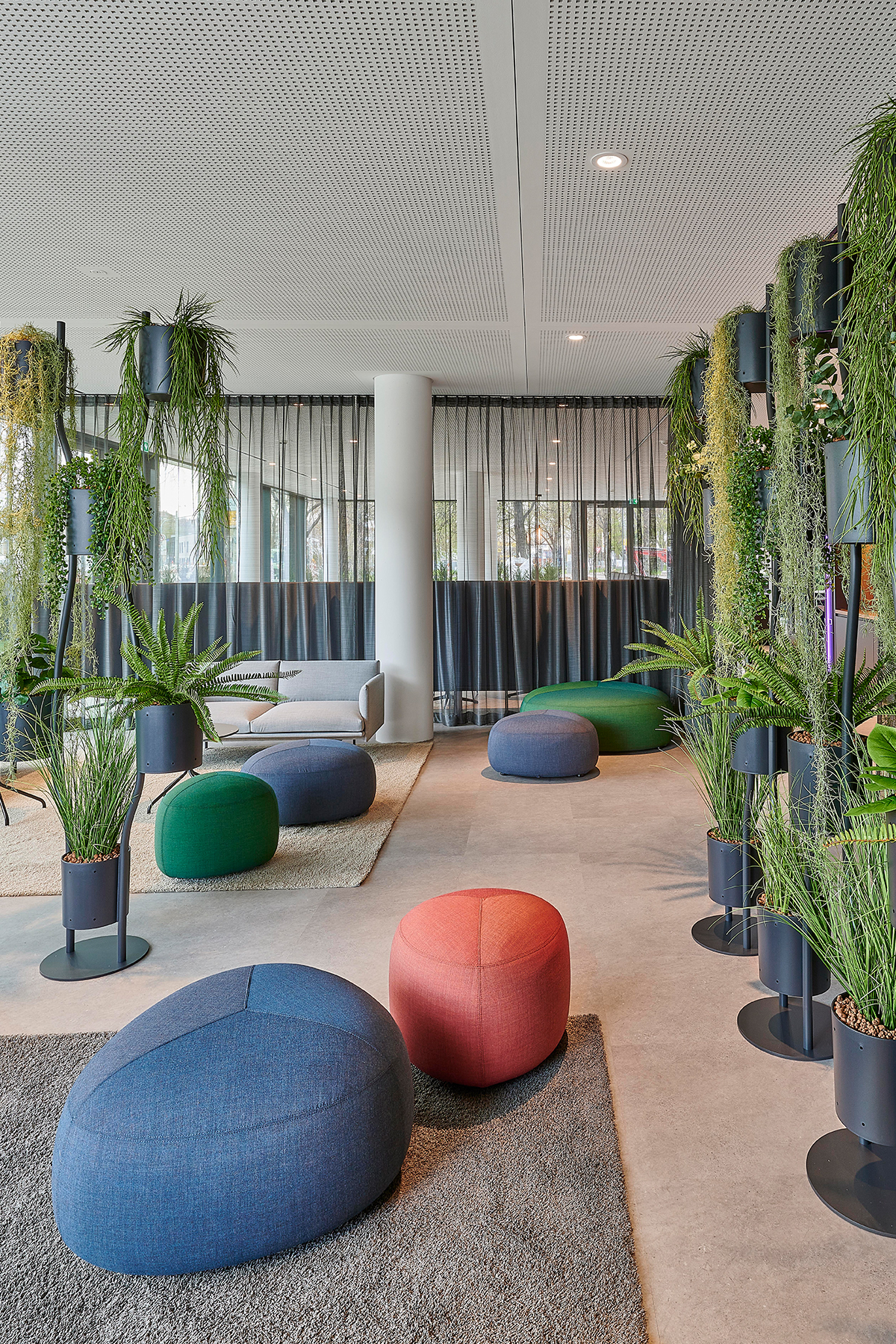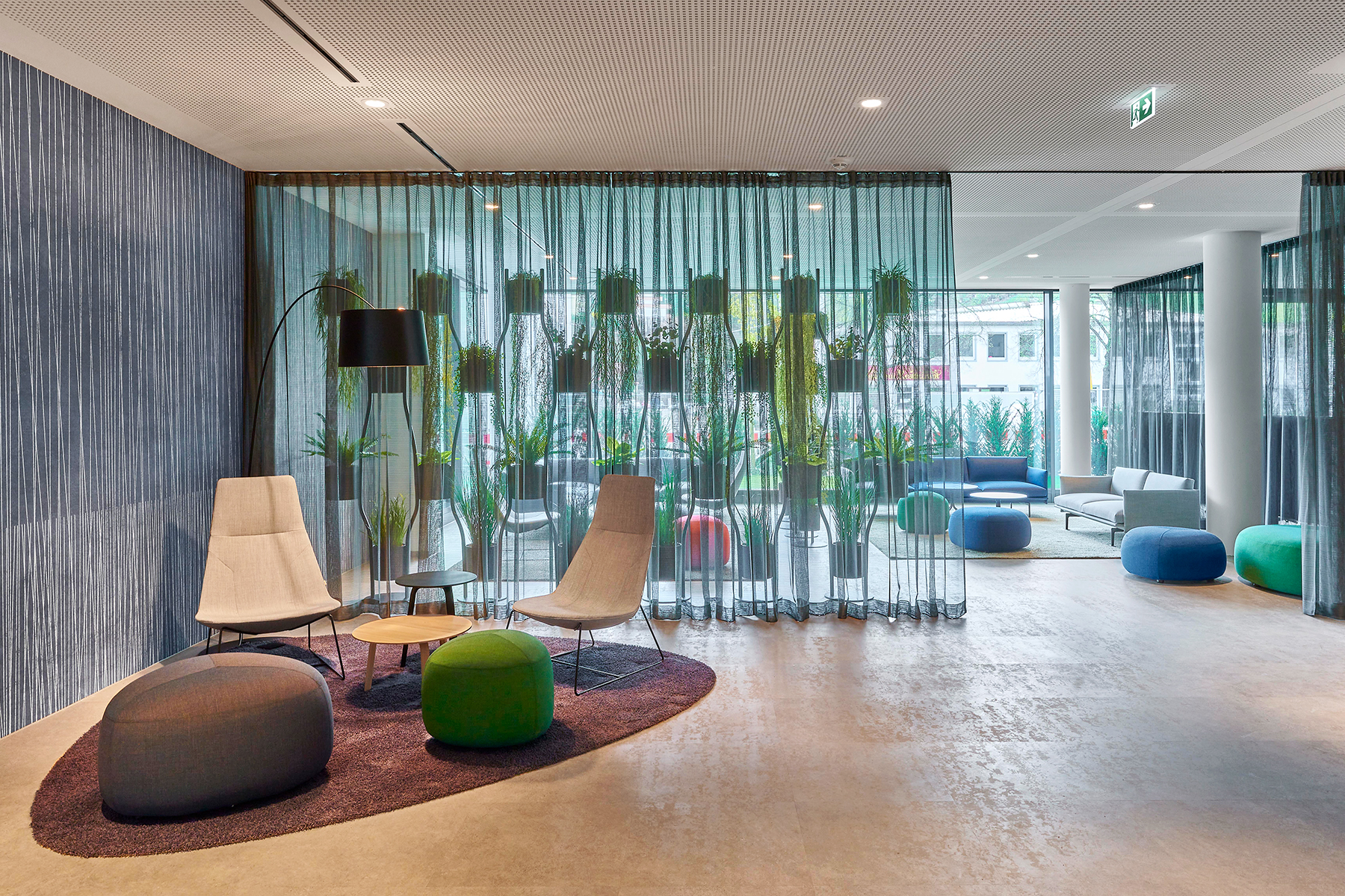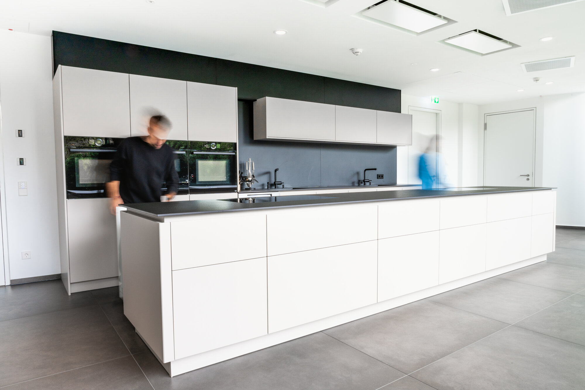 Der Neubau, der unmittelbar an die Bestandsimmobilie angrenzt, besteht aus einem Bürogebäude und einem hochmodernen Kühllager. Die Büroflächen bieten dem Nutzer flexible Arbeitswelten, die aus unterschiedlichen Büroformen bestehen. Diese werden durch individuell gestaltete Rückzugsmöglichkeiten abgerundet. Im Erdgeschoss ist ein großzügiger Bereich für die Mitarbeiter entstanden. Neben der Kantine, gibt es eine Showküche und eine Game-Zone. Die Mitarbeiter sollen sich hier wohlfühlen und der Anspruch der Marke soll deutlich kommuniziert werden. Dies gilt natürlich auch für alle anderen Orte im Gebäude.