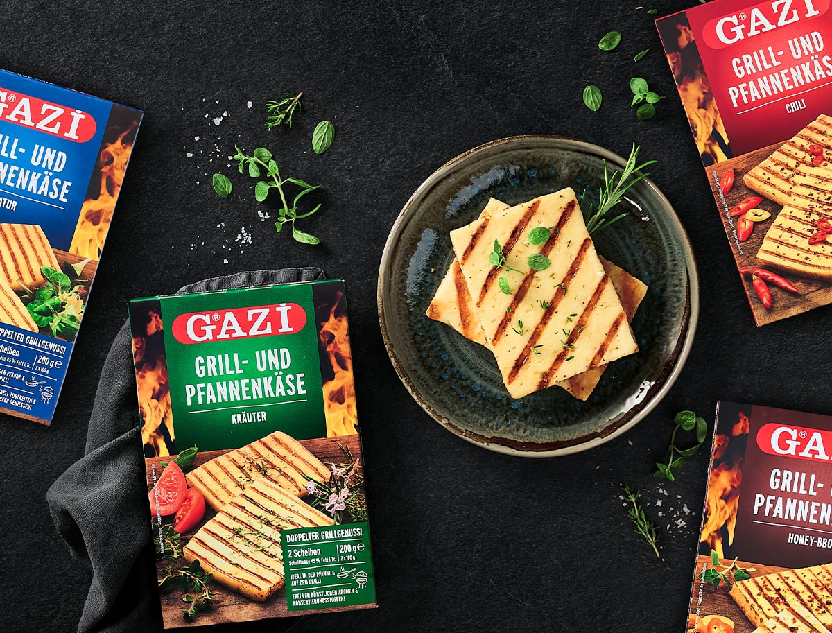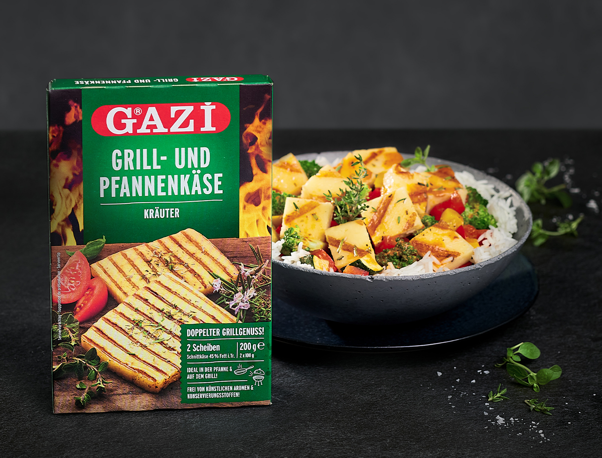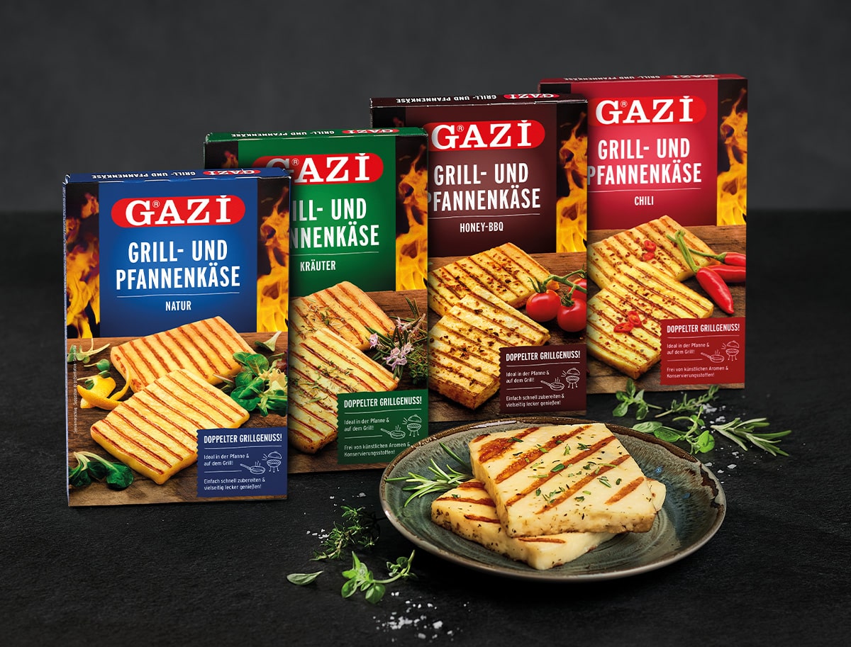 Der GAZİ Grill- und Pfannenkäse ist nicht nur einzigartig gut, sondern auch super hot. Dank der leckeren Rezeptur entfaltet der Grill- und Pfannenkäse sein Aroma direkt auf dem Grill oder in der Pfanne. Das zeigt sich auch im feurigen Verpackungsdesign.
