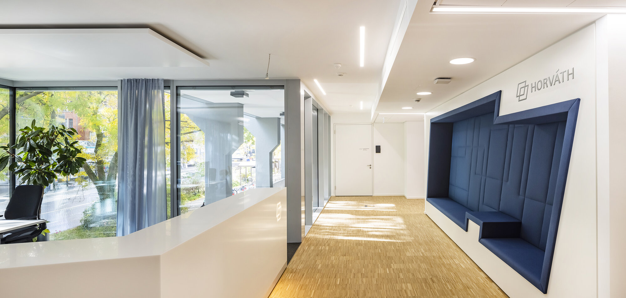 Seit Jahren begleiten wir Horváth als Lead Agentur und freuen uns über die vielen spannenden Projekte, die wir bereits zusammen gemeistert haben. Im Headquater in Stuttgart haben wir das Pilotprojekt Orientierungssystem gestartet und konnten auch in weiteren Offices die definierten Gestaltungsparameter im Raum umsetzen.