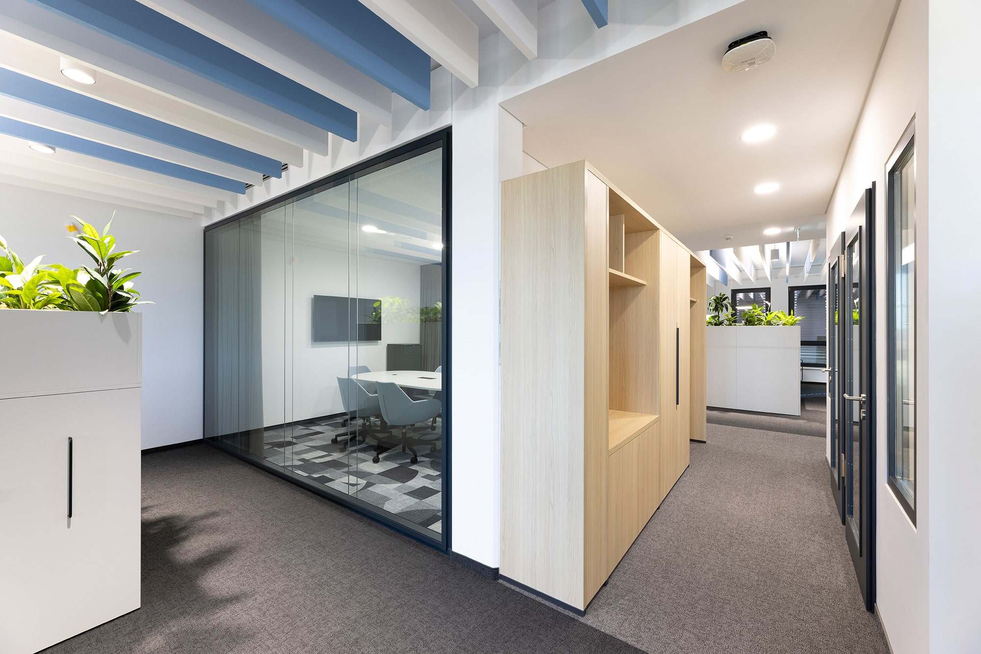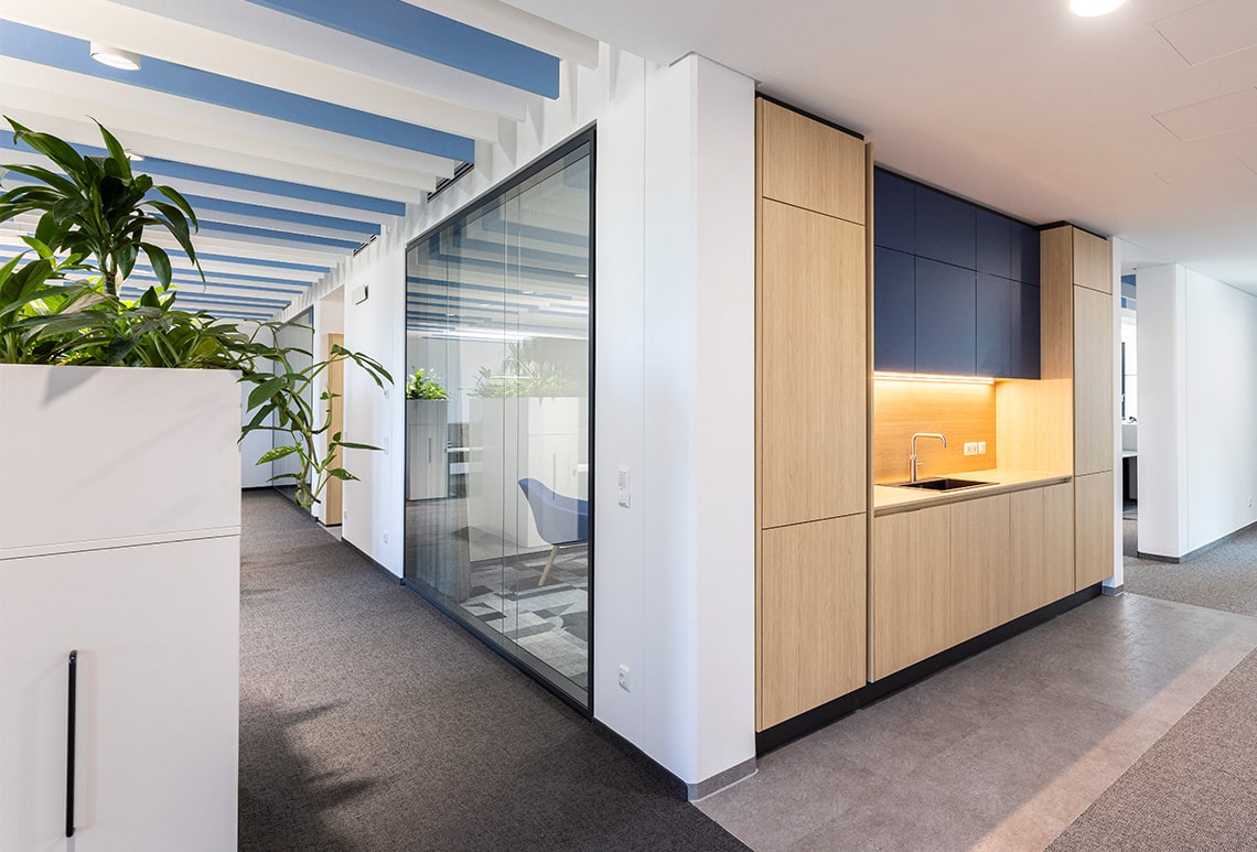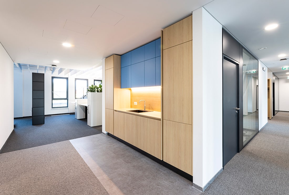 Offen für die Zukunft des Lernens: Für das Softwareunternehmen IServ, das die führende IT-Schulplattform in Deutschland entwickelt und vertreibt, haben wir am Hauptstandort Braunschweig im Sommer 2022 die neuen Büroräume realisiert. Hier gilt Coolness meets Lounging: Auf 4.500 qm und insgesamt 7 Etagen mit Dachterrasse, Open Space und Gruppenbüros, Werkstatt im EG sowie verschiedenen Besprechungsräumen im 6. Obergeschoss.