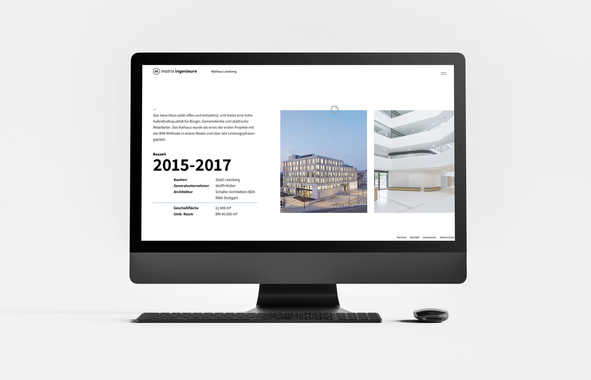 Innovative Architektur braucht Kreativität und eine solide Basis. Die Grundlage allen Bauens legen matrix ingenieure. Die Arbeitsteilung ist klar: Architekten entwerfen. Matrix plant das Tragwerk und wir setzen die Planungsleistungen in Szene. Branding, Geschäftsausstattung, Website und viele weitere Kommunikationsinstrumente bilden die Basis für die extrem stabilen Dienstleistungen der Ingenieure.