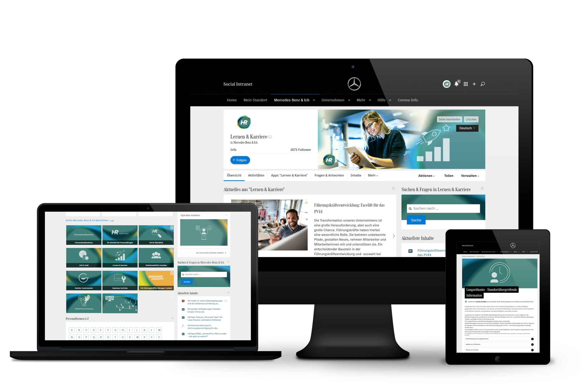 Innerhalb der Umstellung der Daimler AG zur Mercedes-Benz Group AG wurde von uns das gesamte HR Design angepasst. Es erfolgte eine gesamtheitlich neue HR-Leitidee auf visueller Ebene mit einem Redesign des HR Logos, aller Keyvisuals, Icons und entsprechend zahlreichen Kommunikationsmaßnahmen sowohl Digital, u.a. im Social Intranet, als auch im Printbereich.