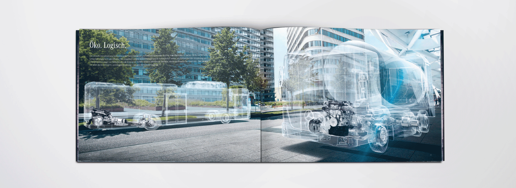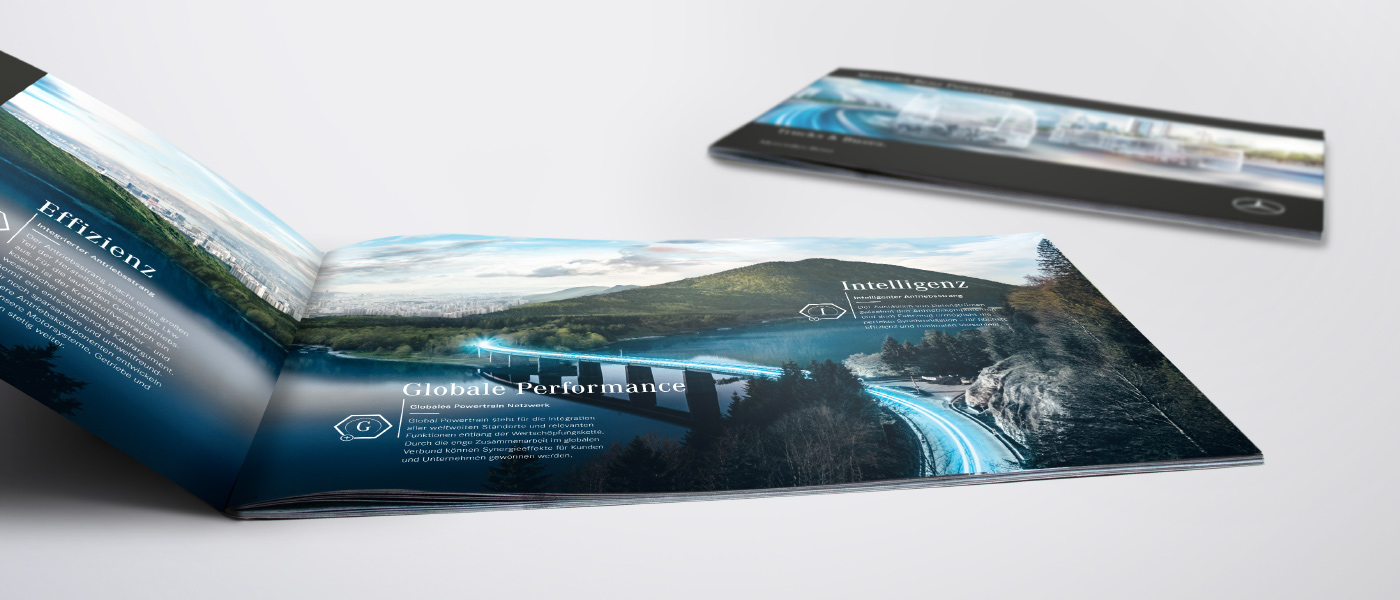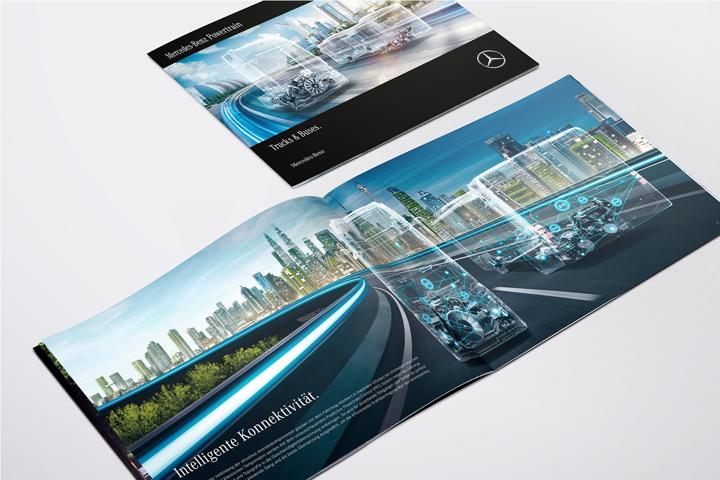 Für Mercedes-Benz Powertrain entwarfen wir eine neue Realität innerhalb eines visuellen und inhaltlichen Gesamtkonzeptes. Im neuen Look-and-feel enthalten: Neue Stories, neue Städte, transparente Versionen der Trucks & Buses, großformatige Produktstills und authentische People-Fotografien. All das tauchten wir in faszinierendes Electric Blue und definierten ein verbindliches Brand Book für die Marke Mercedes-Benz Powertrain, das als Grundlage und Regelwerk für die Markenkommunikation dient.