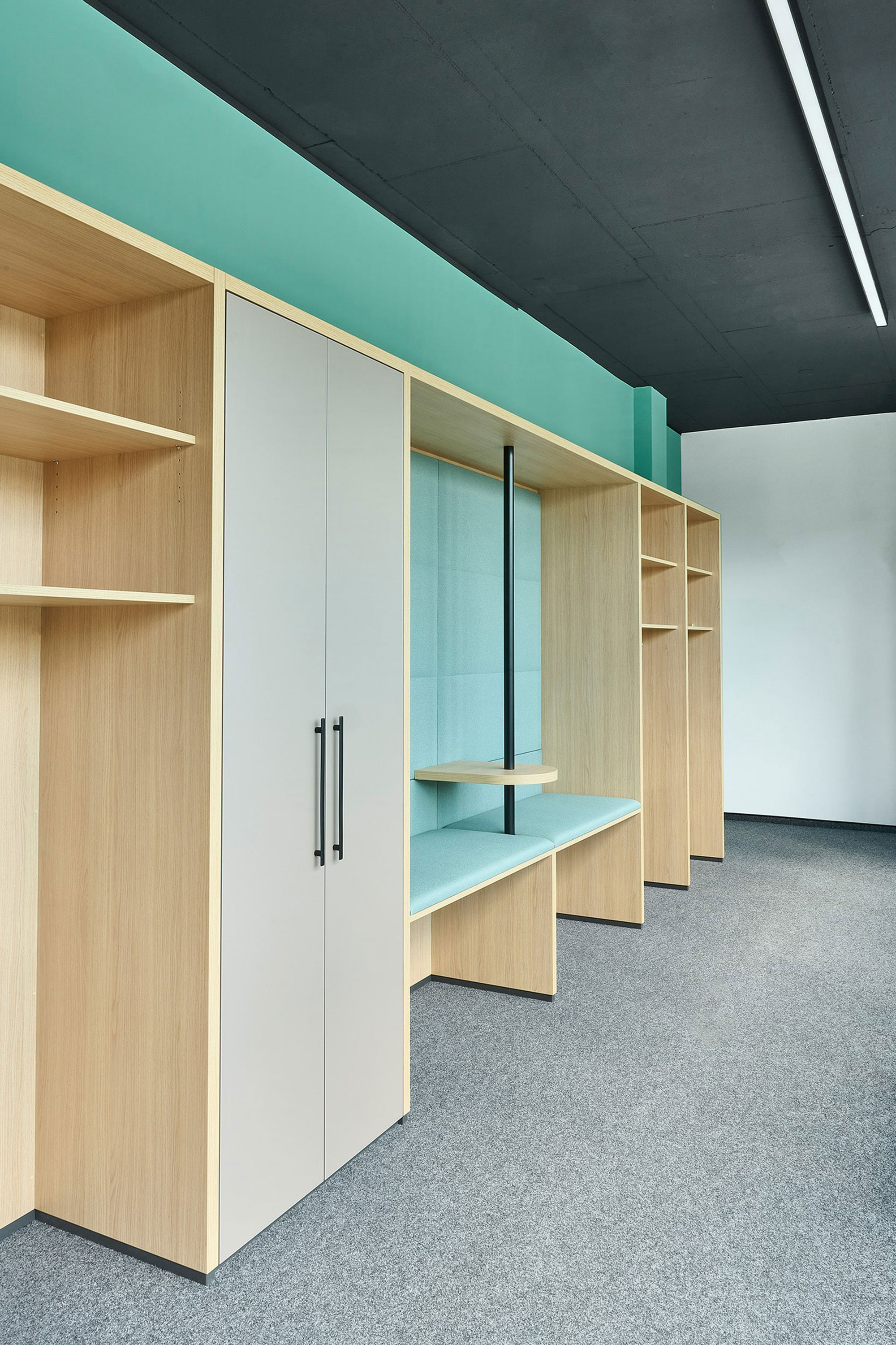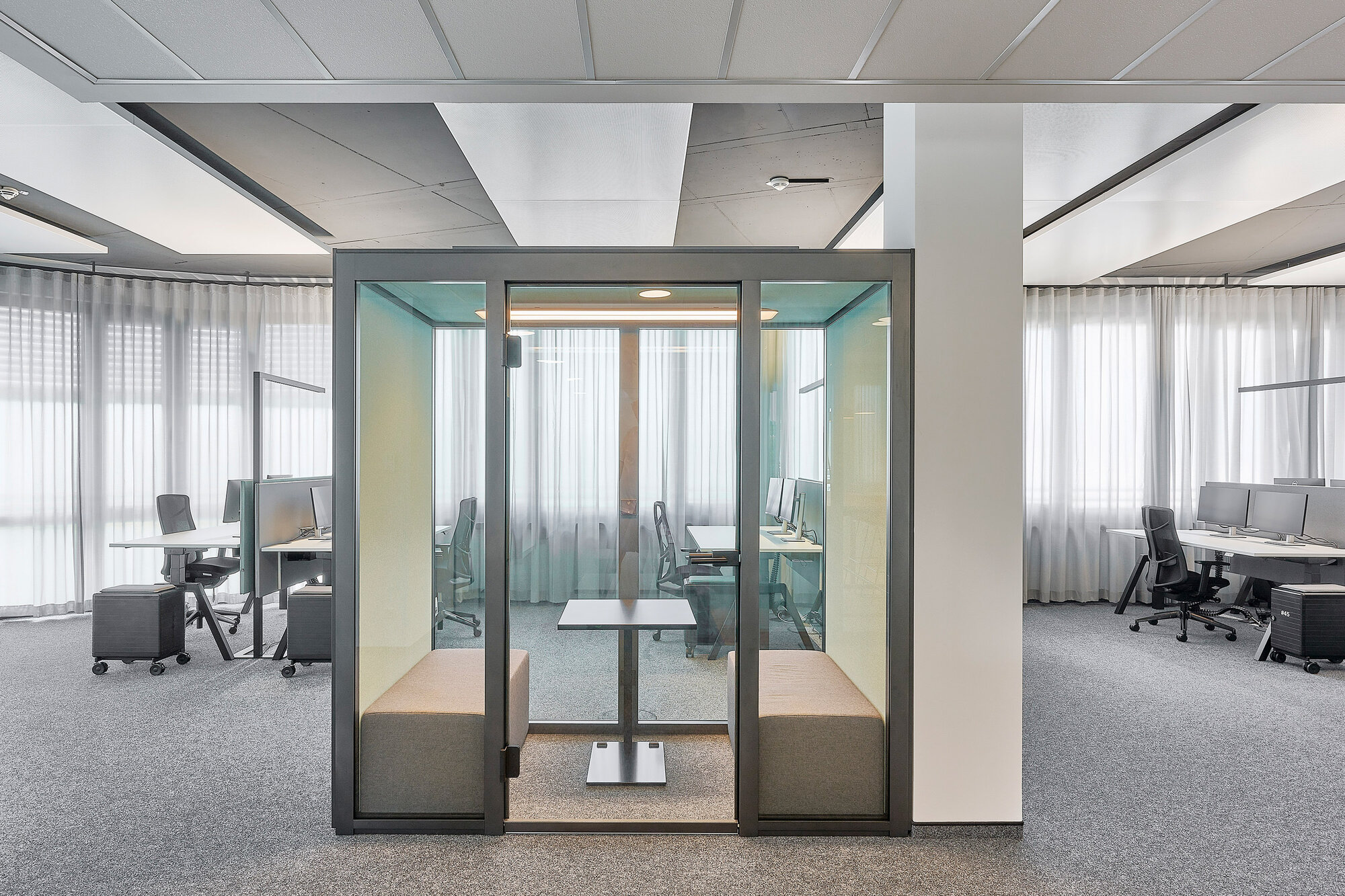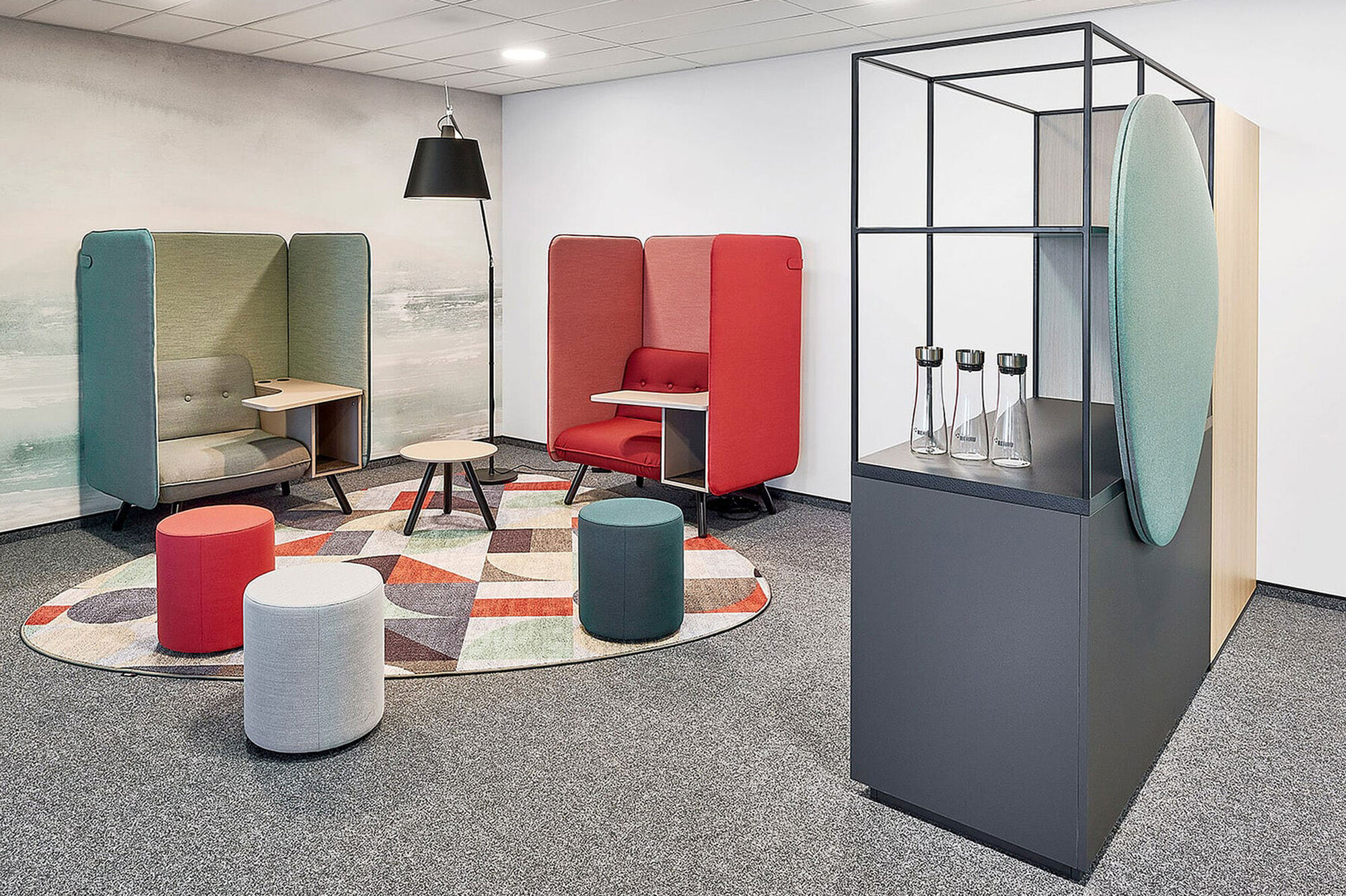 Offen für alles: Für den Kunststoff- und Polymerhersteller Rehau hat das Süd.Com Team am Standort Sindelfingen eine neue Arbeitswelt auf 900 qm geplant und umgesetzt. Das Raumkonzept basiert auf flexibel buchbaren Arbeitsplätzen und kleinen Caddys für die Mitarbeiter/innen. Hinzu kommen loungige Kommunikationszonen, die zum Teamwork oder zu spontanen Meetings einladen und die auch als Ruhezone genutzt werden können.
