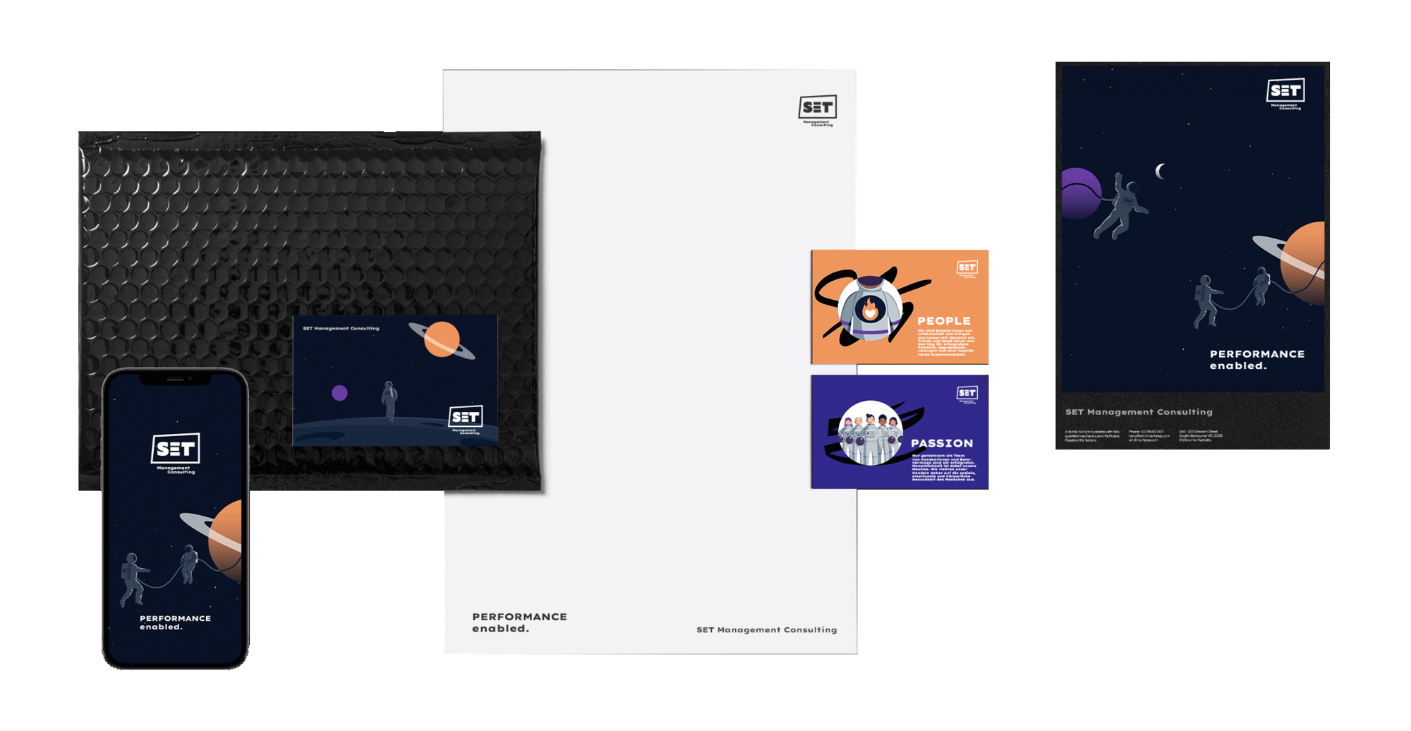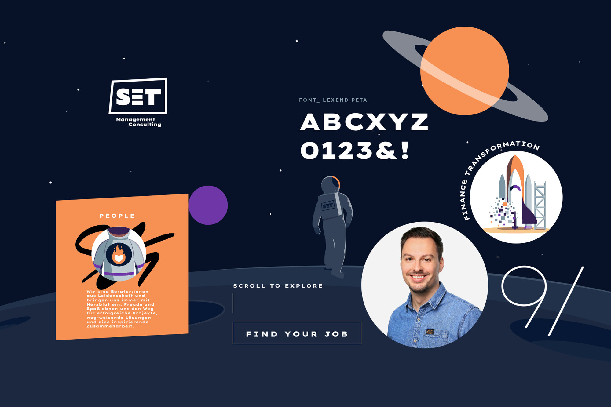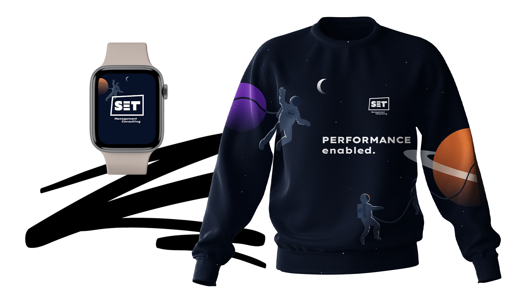 Ein Start-up mit den besten Voraussetzungen! Wir haben SET mit einem energiegeladenen, aufmerksamkeitsstarken Branding, u.a. mit Illustrationen, SVG-Animationen, neuer Website und einem Messeauftritt, unterstützt.