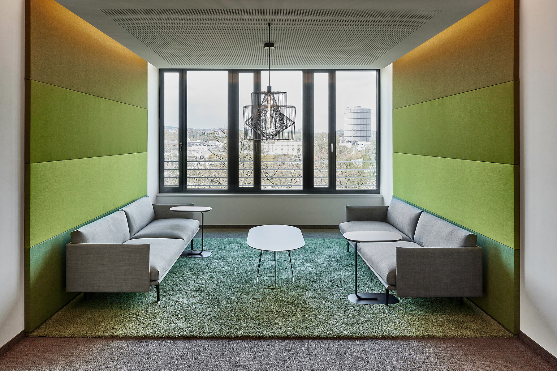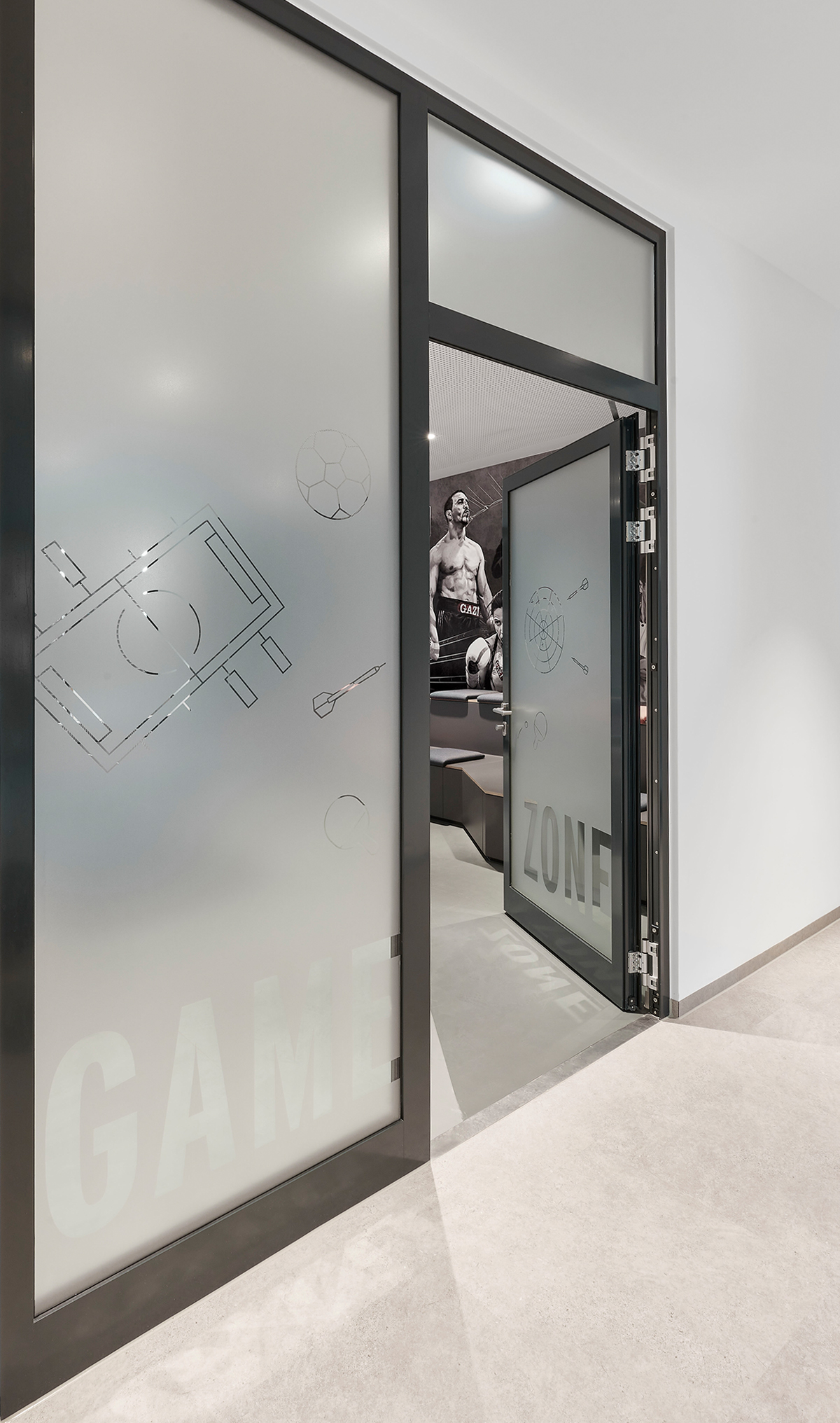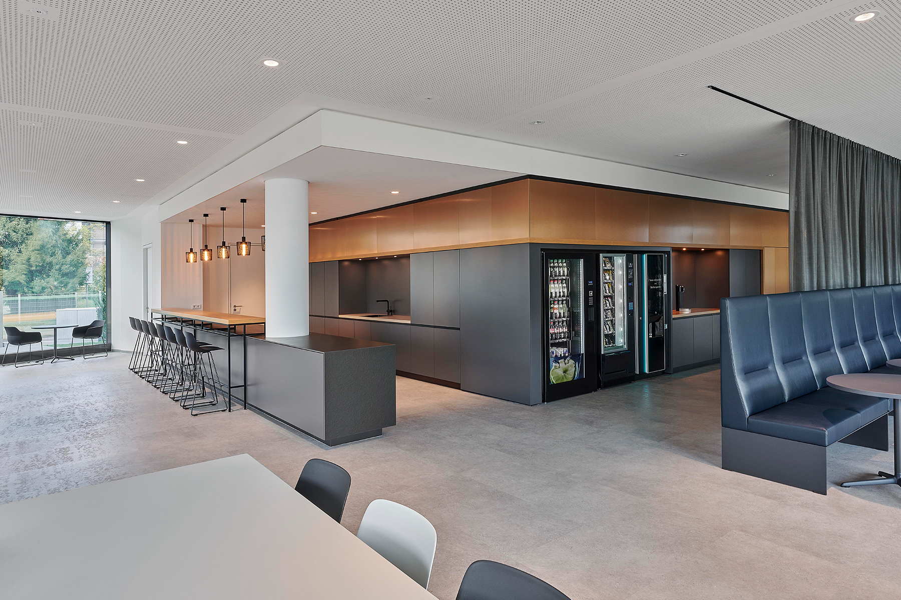 Der Neubau, der unmittelbar an die Bestandsimmobilie angrenzt, besteht aus einem Bürogebäude und einem hochmodernen Kühllager. Die Büroflächen bieten dem Nutzer flexible Arbeitswelten, die aus unterschiedlichen Büroformen bestehen. Diese werden durch individuell gestaltete Rückzugsmöglichkeiten abgerundet. Im Erdgeschoss ist ein großzügiger Bereich für die Mitarbeiter entstanden. Neben der Kantine, gibt es eine Showküche und eine Game-Zone. Die Mitarbeiter sollen sich hier wohlfühlen und der Anspruch der Marke soll deutlich kommuniziert werden. Dies gilt natürlich auch für alle anderen Orte im Gebäude.