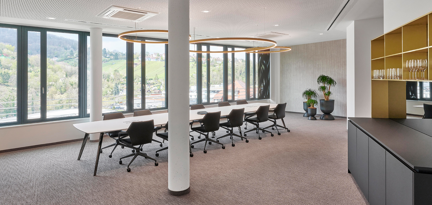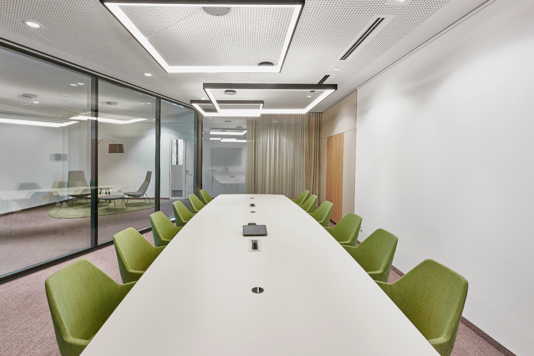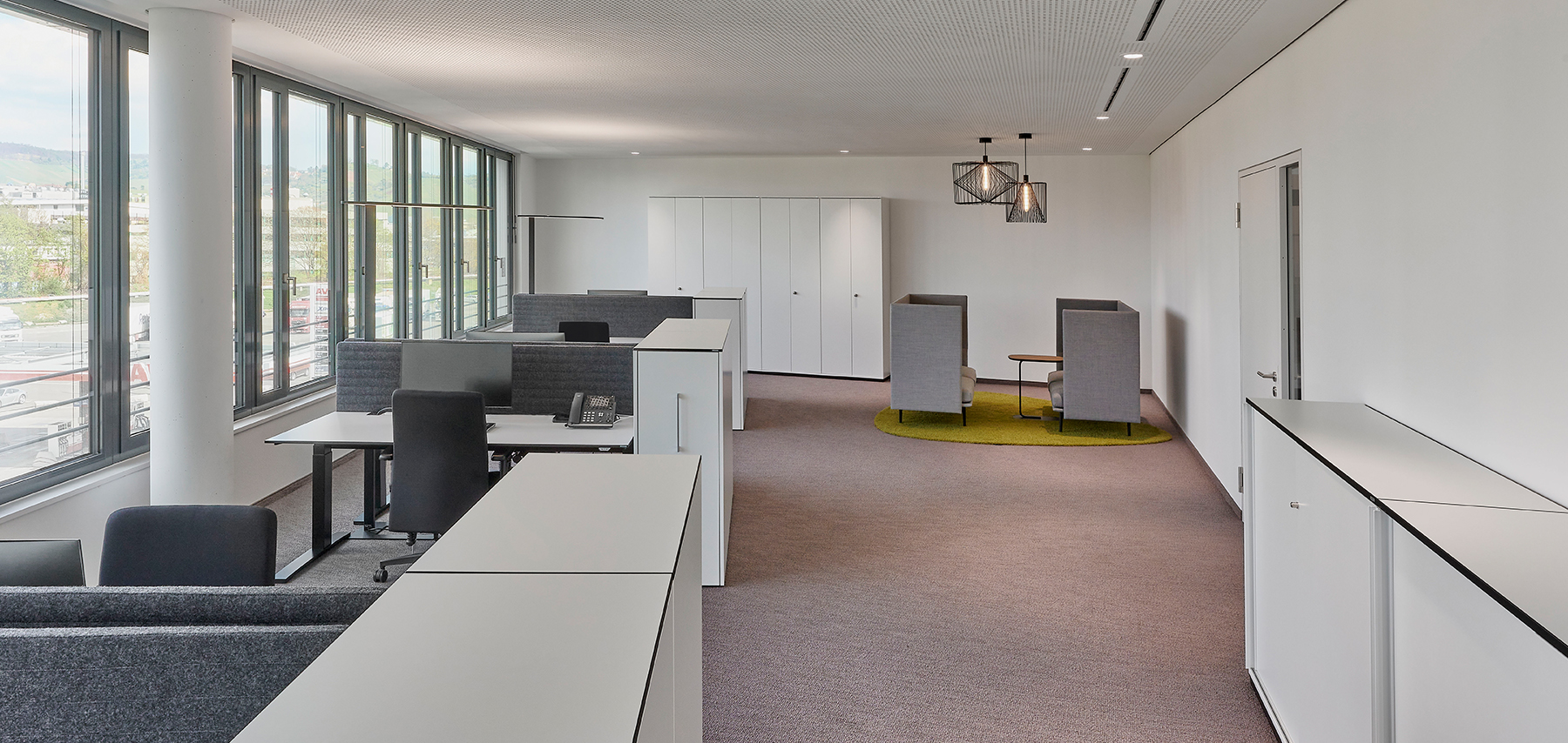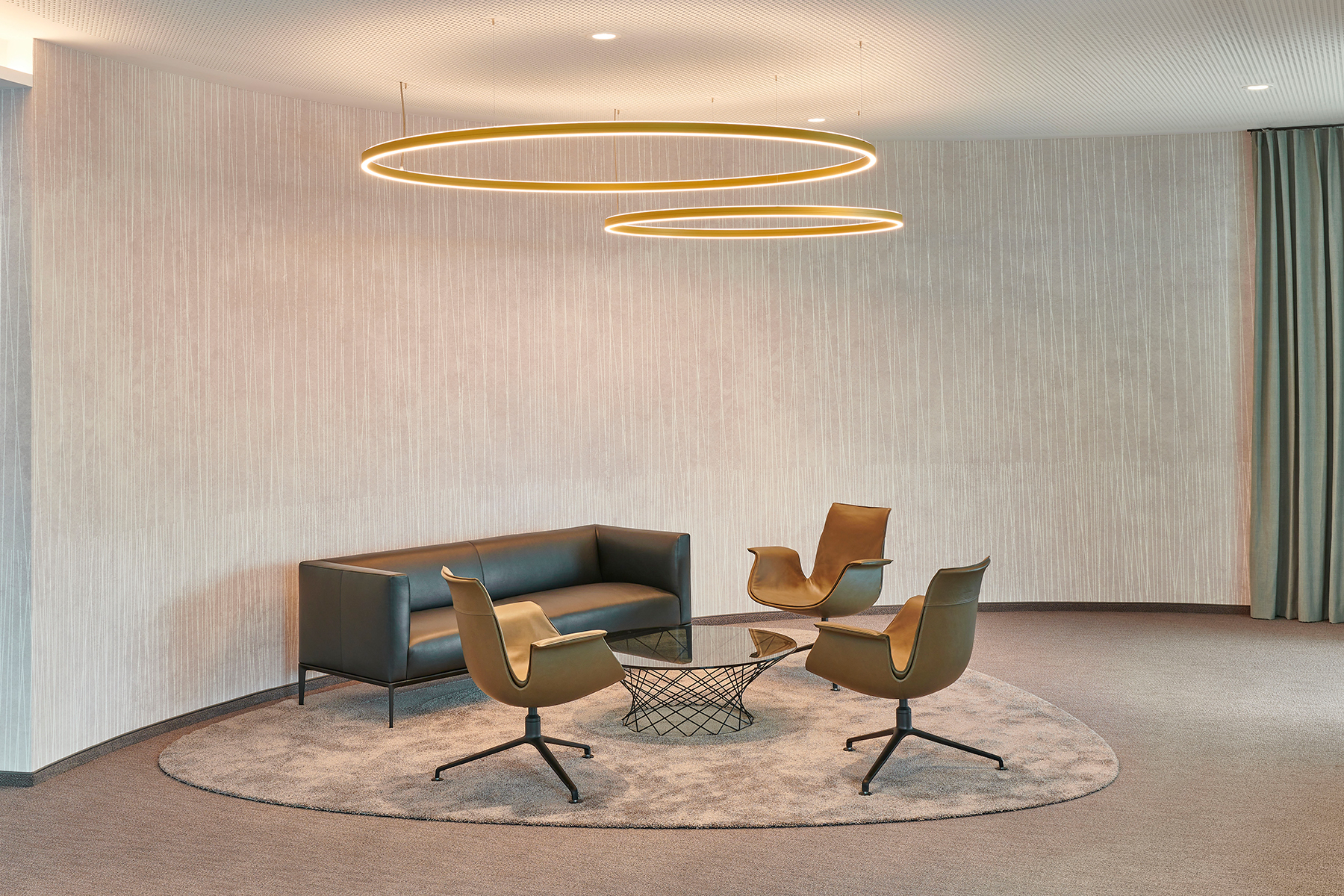 Der Neubau, der unmittelbar an die Bestandsimmobilie angrenzt, besteht aus einem Bürogebäude und einem hochmodernen Kühllager. Die Büroflächen bieten dem Nutzer flexible Arbeitswelten, die aus unterschiedlichen Büroformen bestehen. Diese werden durch individuell gestaltete Rückzugsmöglichkeiten abgerundet. Im Erdgeschoss ist ein großzügiger Bereich für die Mitarbeiter entstanden. Neben der Kantine, gibt es eine Showküche und eine Game-Zone. Die Mitarbeiter sollen sich hier wohlfühlen und der Anspruch der Marke soll deutlich kommuniziert werden. Dies gilt natürlich auch für alle anderen Orte im Gebäude.