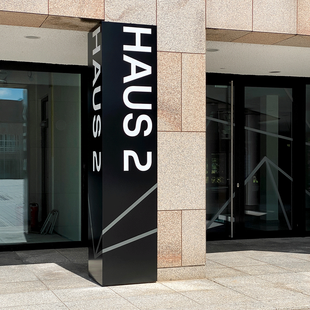 Dabei versuchen wir immer den Mehrwert zu schaffen, das jeweilige Unternehmen und die spezifische Nutzung des Ortes visuell zu übersetzen – denn neben einer reibungslosen Orientierung für Besuchende, ist die Identifikation des Unternehmens mit der von uns geschaffenen visuellen Sprache ebenso erheblich, für eine gesamtheitliche und nachhaltige Kommunikation im Raum.